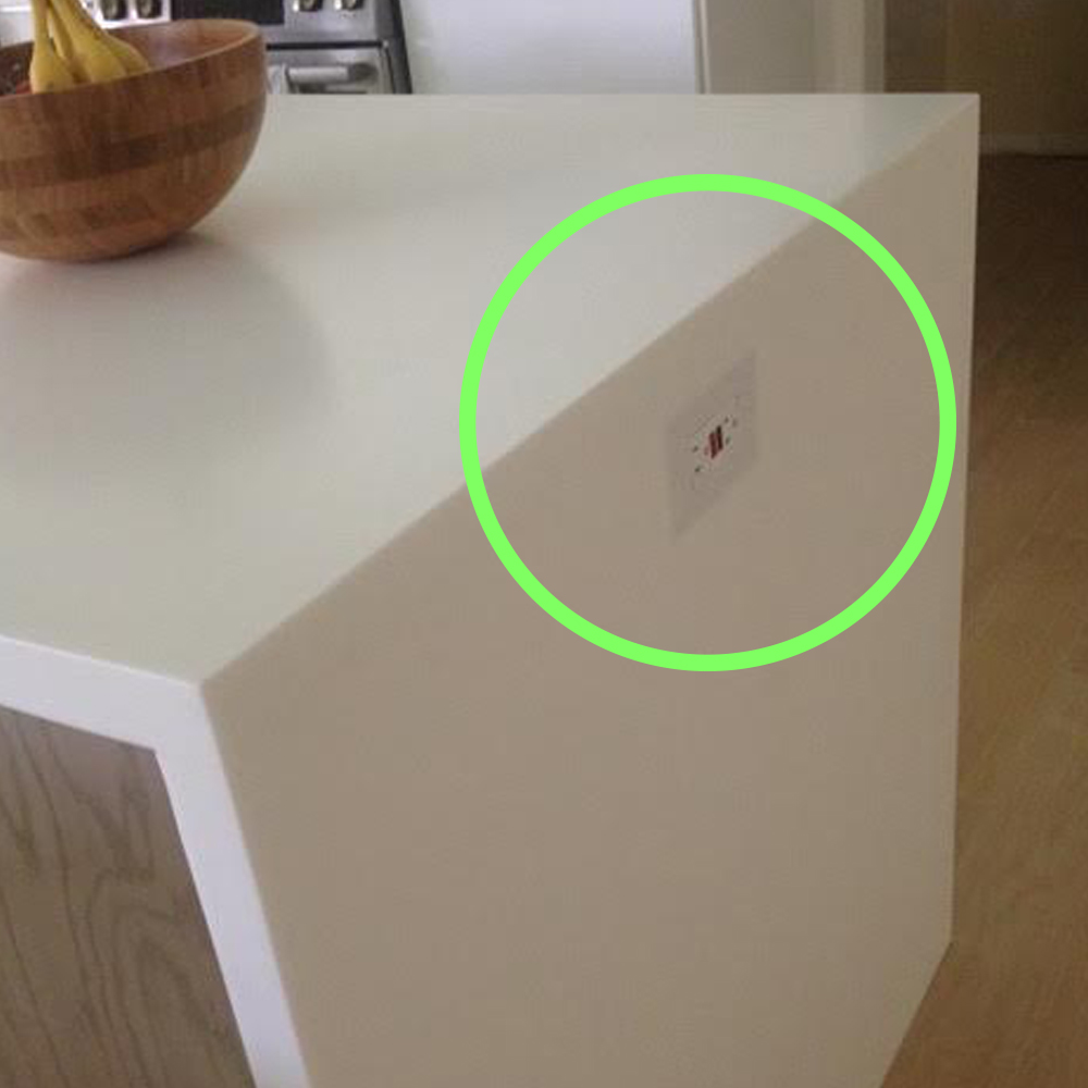 Using our Smoothline flush mount outlet kit for wood you can use your system with solid surface materials. With materials like Corian, you can rout out the material just like wood.